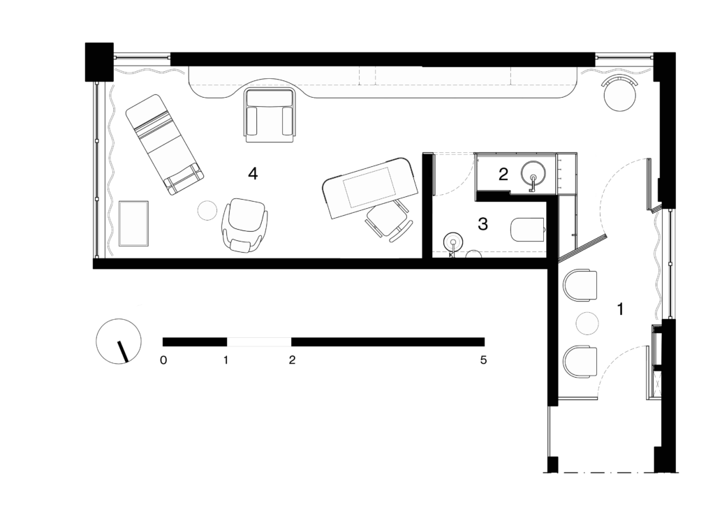 1. ESPERA, 2. COPA, 3. W.C. E 4. CONSULTÓRIO