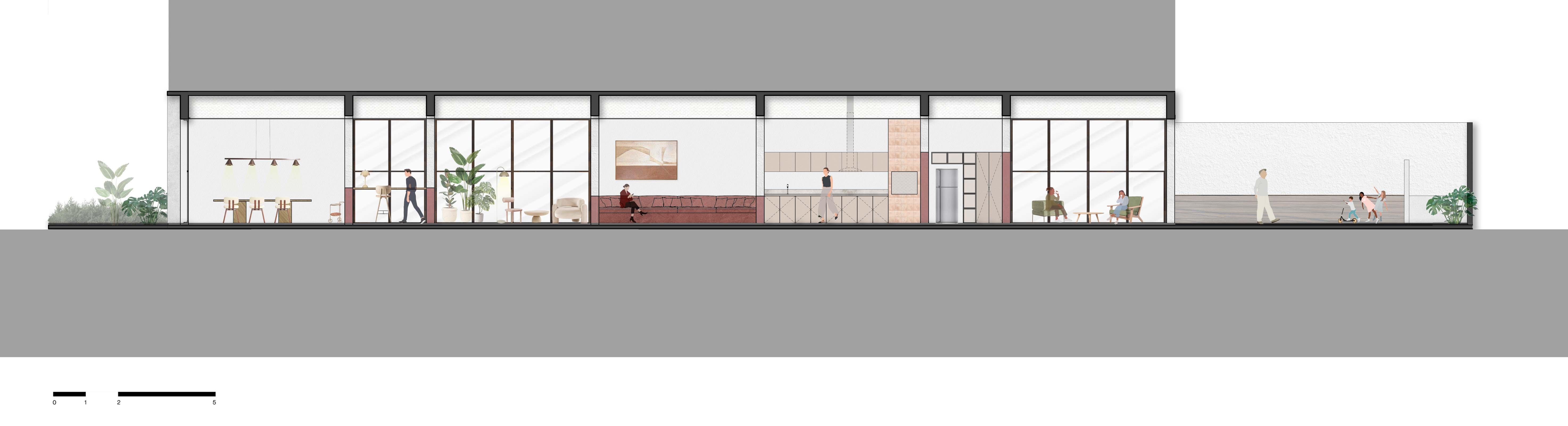 Era importante que os espaços internos fossem inspiradores, trazendo fluidez e criando percursos leves e intuitivos. Nesse sentido buscamos uma unidade entre os ambientes, trabalhando com pouca variação de materiais e revestimentos onde as cores trazem ritmo e legibilidade ao longo dos usos e pavimentos.